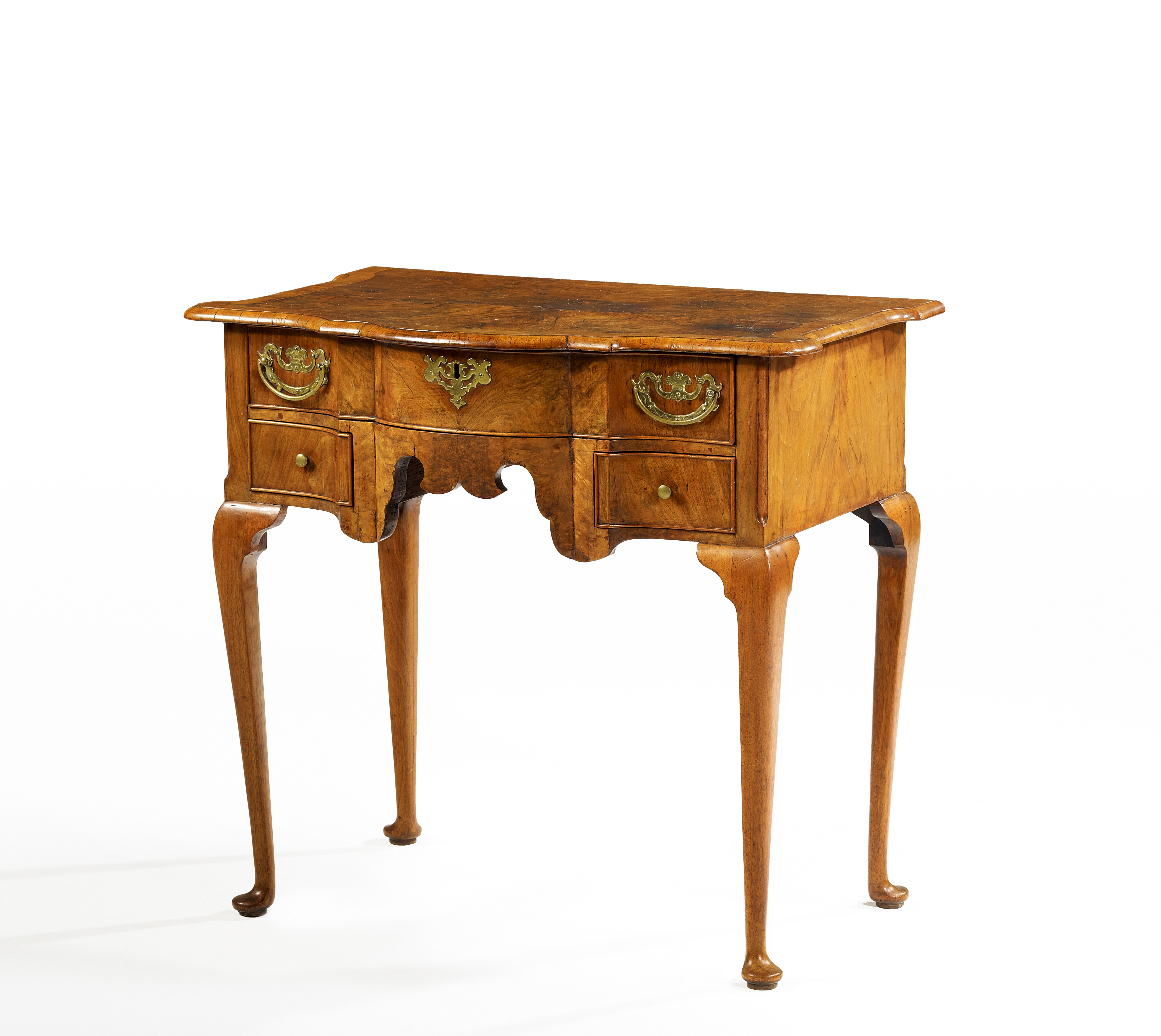 Nussbaum poliert und eingelegt. Dreischübige geschweifte Front. 73x79x49 cm. Zustand B.