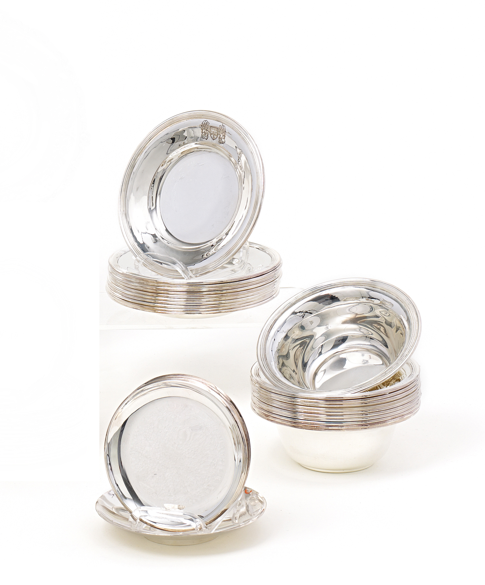 Silber. Untersetzer mit Wappengravur. {Beil.:} Sechs Untersetzer. Silber. Bremen. Feingehalt 925.