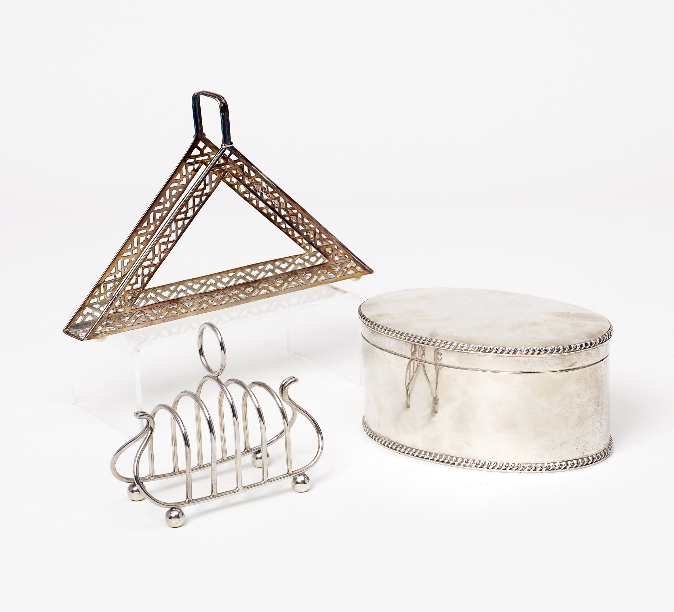 Silber. {Beil.:} Serviettenhalter, Silber. Toastständer, versilbert. Ca. 664g / 188g. Höhe 9, Länge 18,5cm.