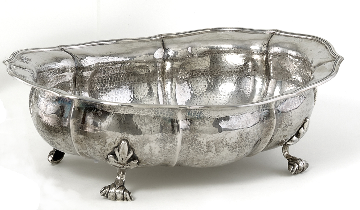 Silber. Ca.858g. Höhe 11,5cm, Länge 36cm.