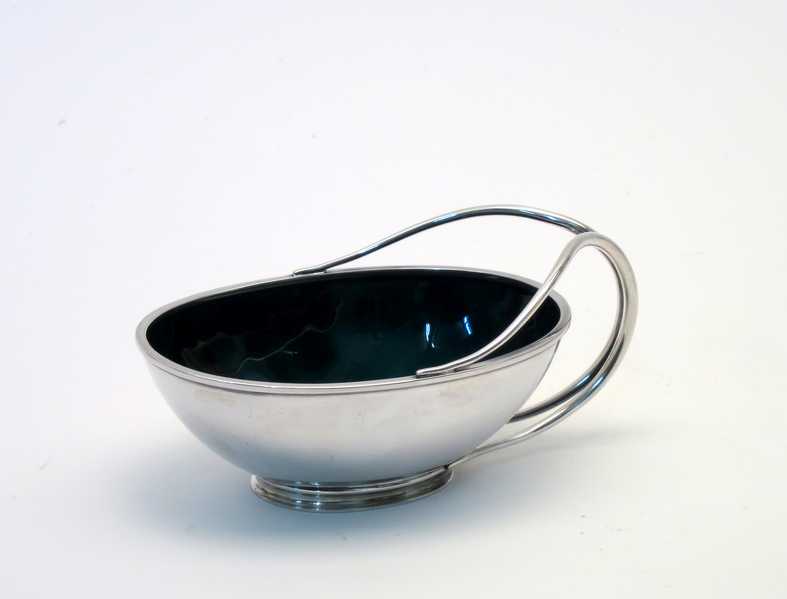 Silber. Dunkelgrünes, transluzides Email. Ca.136g. Höhe 5cm, Länge 13cm.
