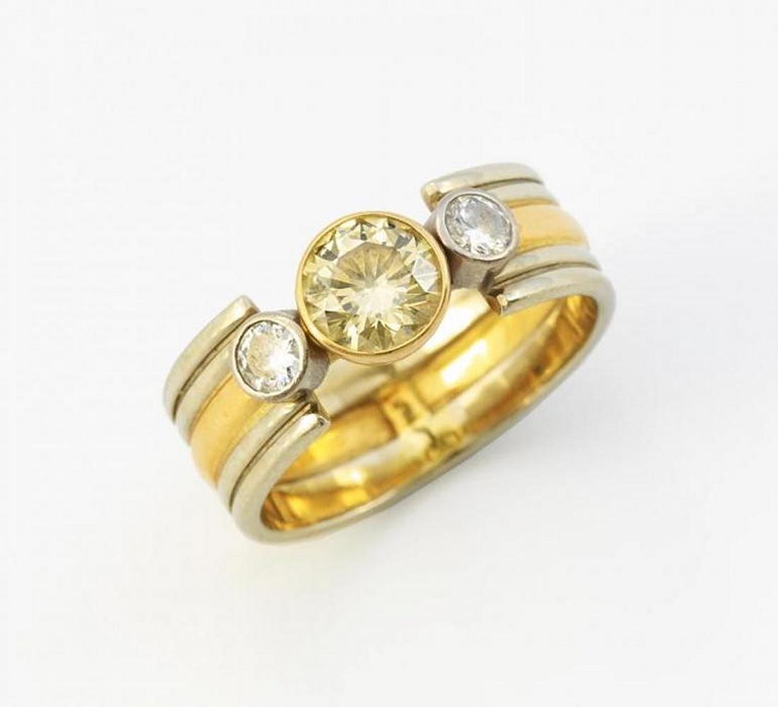 750/- Weiß-/Gelbgold, Gewicht: 7,8g. EU-RM: 59. 1 Brillant 0,977ct Cape(S-Z) VS1, 2 Brillanten zus.ca. 0,245ct W(H) SI.