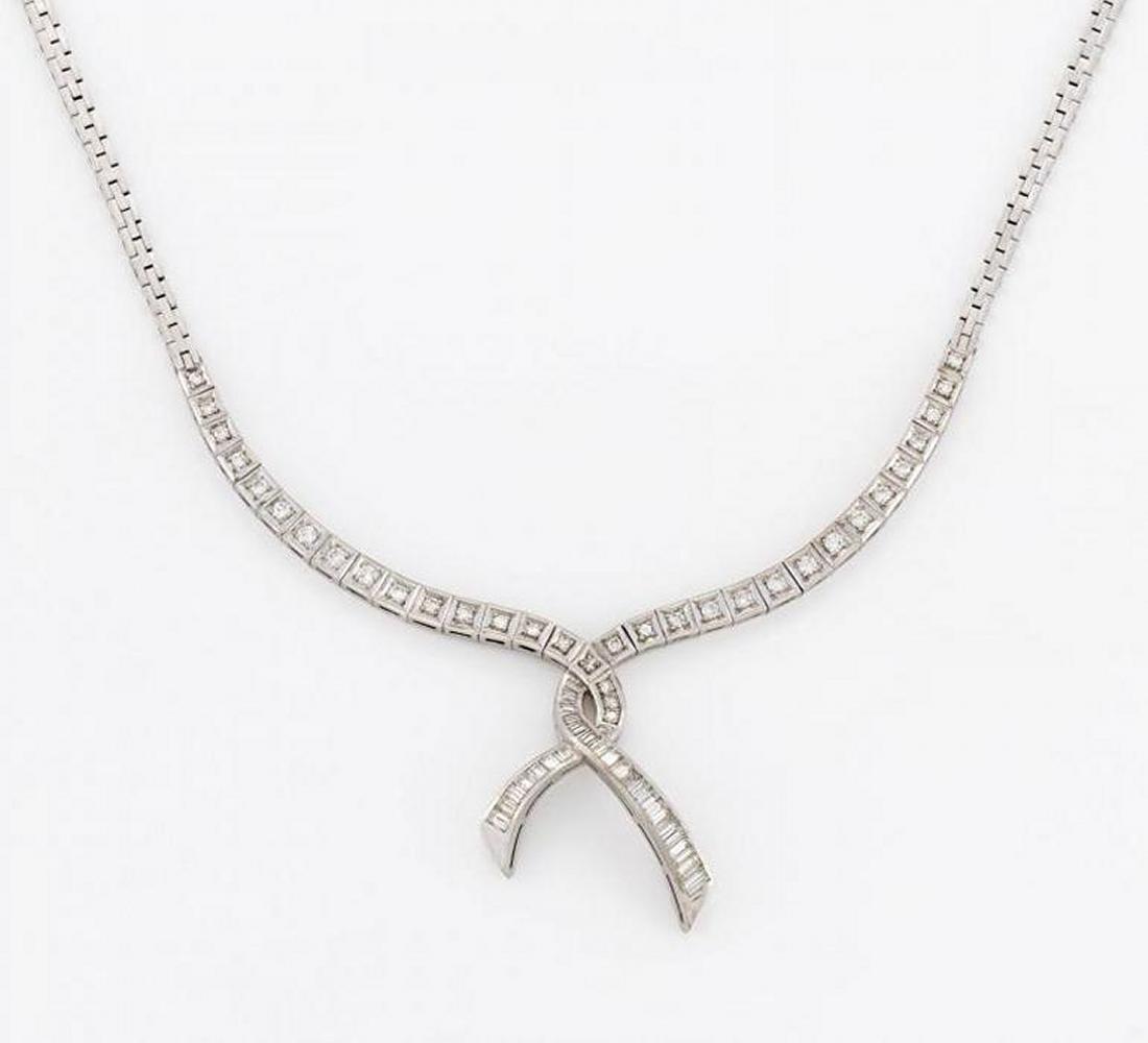 750/- Weißgold, Gewicht: 52,5g. L.ca. 48,5cm. 24 Diamant-Baguettes, 30 Brillanten und 4 8/8-Diamanten zus.ca. 2,672ct W(H) VVS-VS.