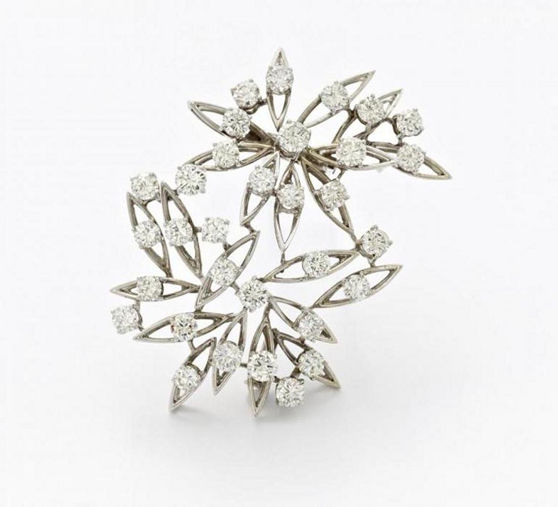 750/- Weißgold, Gewicht: 15,4g. H x B=ca. 3,1 x 5,2cm. 30 Brillanten zus.ca. 5,045ct TW-W(G-H) VVS.