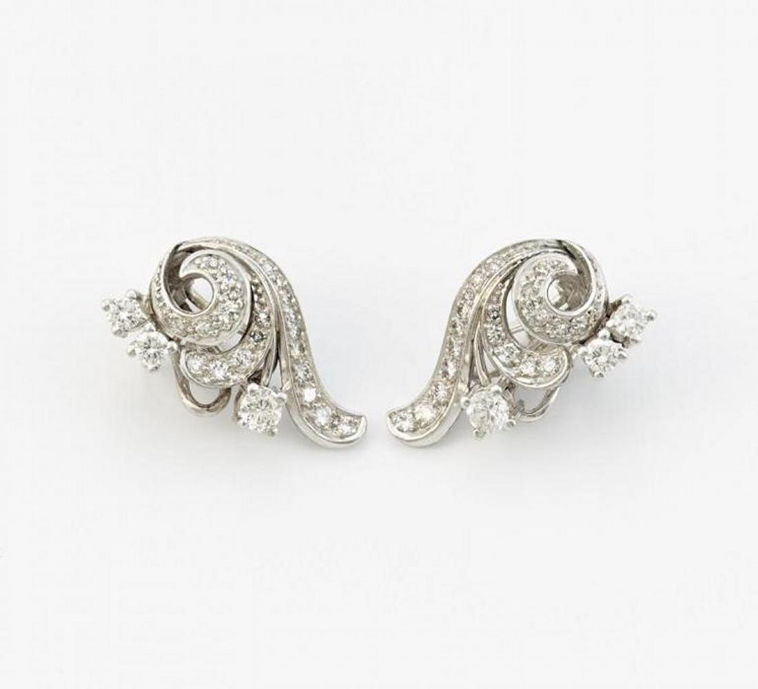 585/- Weißgold, Gewicht: 9,6g. H x B=ca. 2,2 x 1,4cm. 46 Diamanten im Brillant- und 8/8-Schliff zus.ca. 0,888ct W(H) VVS-VS.