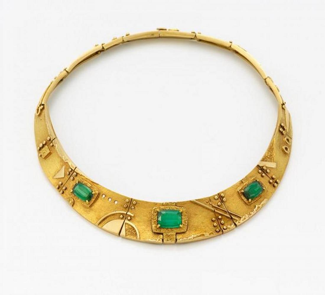 Modernes Collier mit geometrischen Mustern. Im Verlauf gearbeitet, Glieder beweglich,