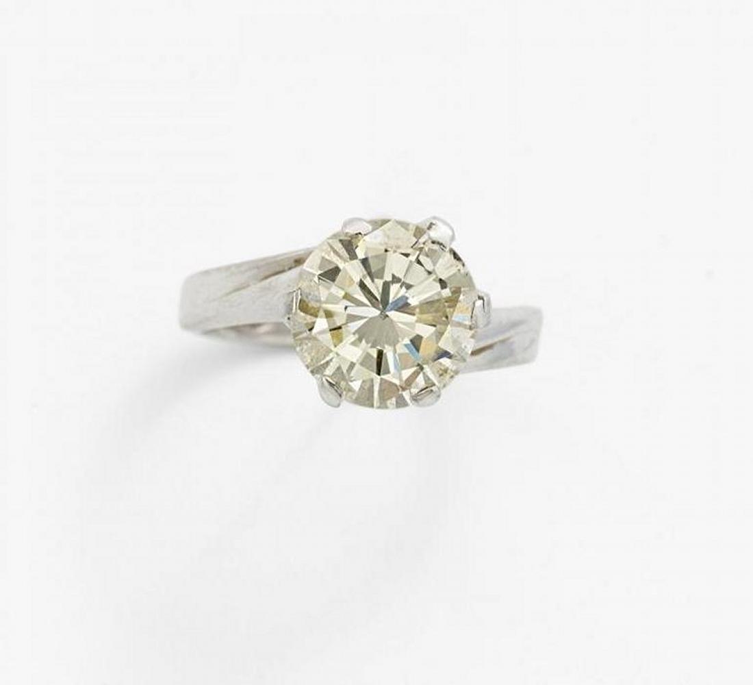 750/- Weißgold, Gewicht: 4,4g. EU-RM: 48. 1 Brillant ca. 2,886ct Cape(M-N) P1.