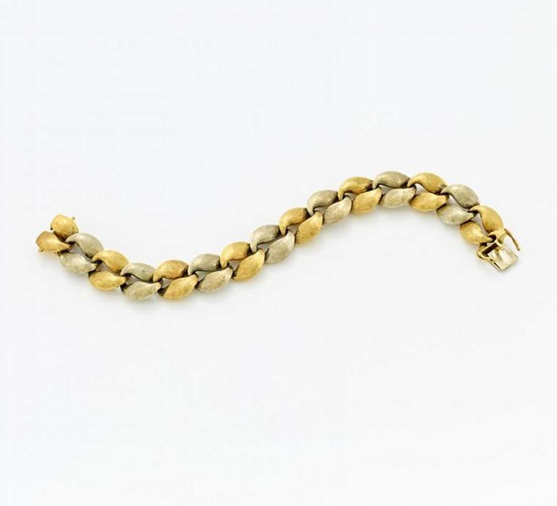 750/- Rosé-/Gelbgold, Gewicht: 65,2g. L x B=ca. 19,0 x 1,5cm.
