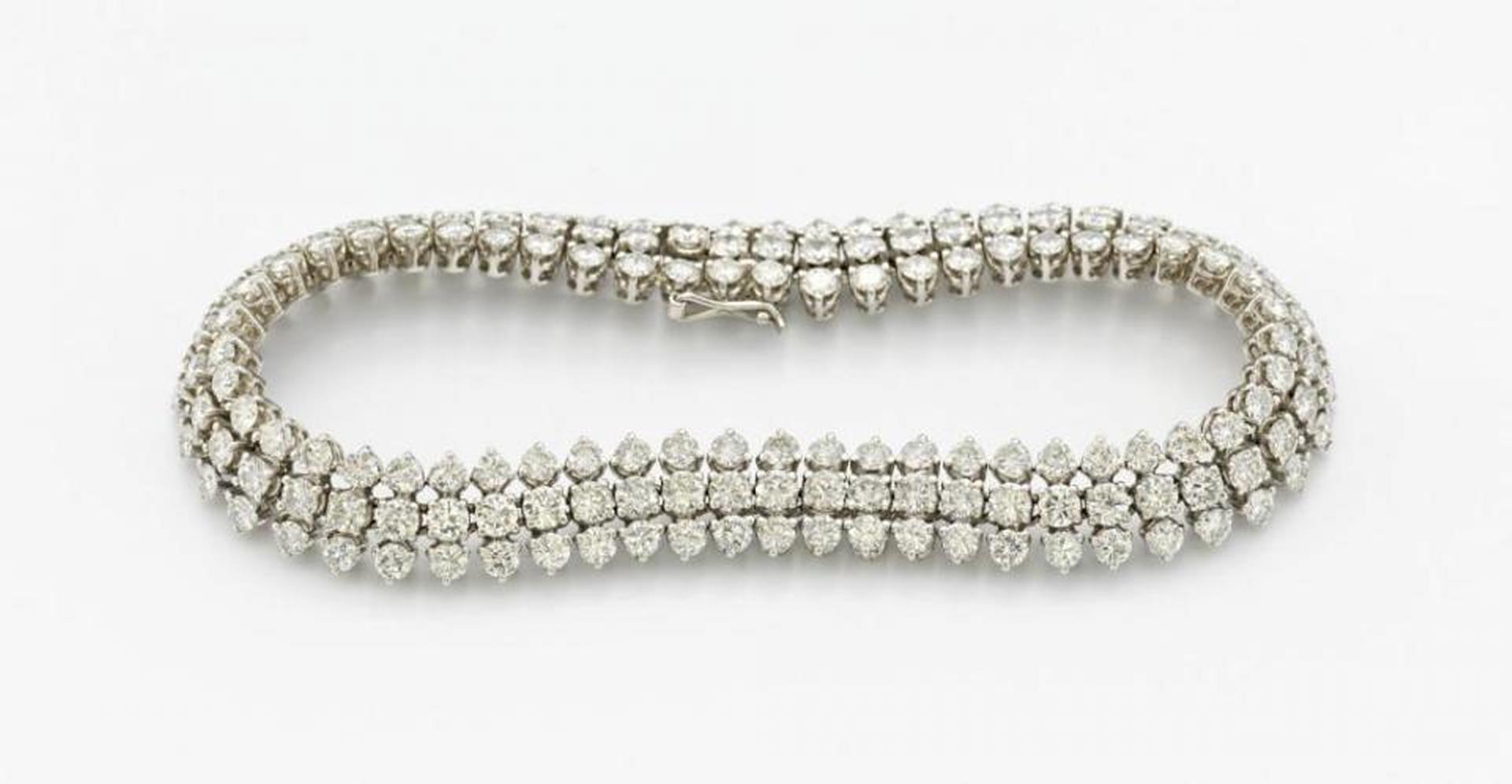 750/- Weißgold, Gewicht: 22,3g. L x B=18,5 x 0,9cm. Ca. 162 Brillanten zus.ca. 12,096ct TW(F-G) VVS.