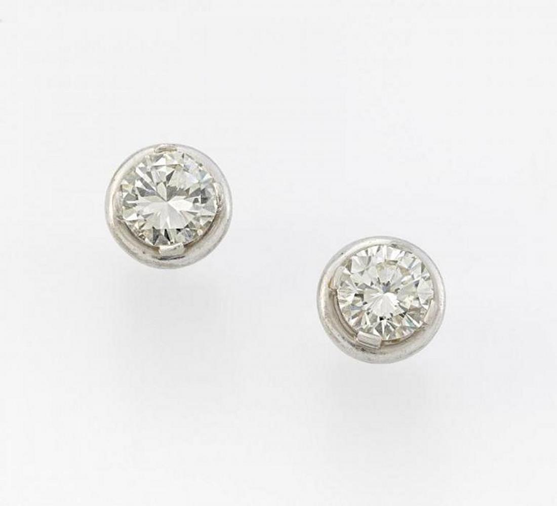 750/- Weißgold, Gewicht: 4,2g. Top D. 8,7mm. 1 Brillant ca. 1,092ct TCr(I) VVS2, 1 Brillant ca. 1,098ct TCr(I) VVS2.