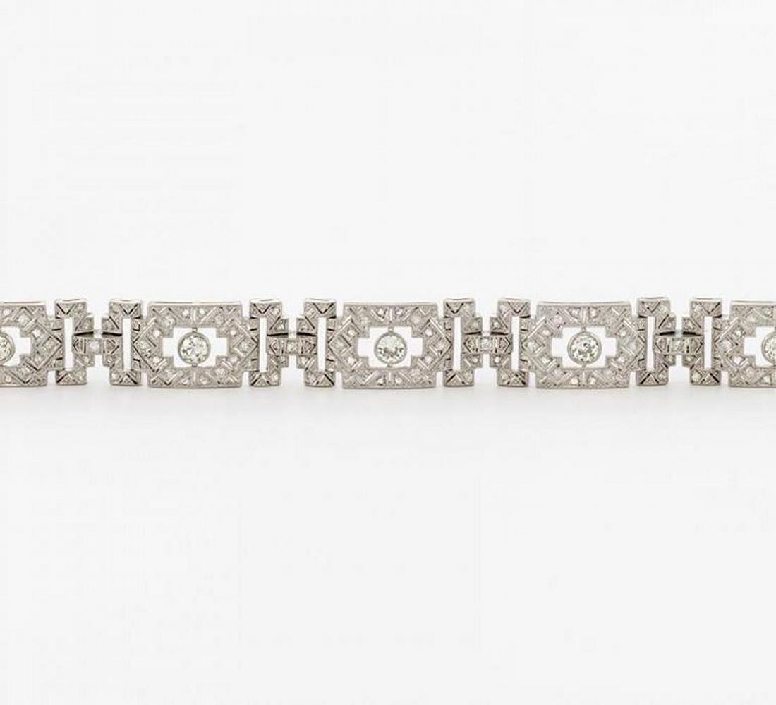 750/- Weißgold, Gewicht: 31,1g. L x B=ca. 18,0 x 1,3cm. Ca. 143 Diamanten im 8/8- und Rosenschliff zus.ca. 0,72ct, 6 Altschliff-Diamanten zus.ca. 1,687ct TCr-Cr(I-J) VS-SI.