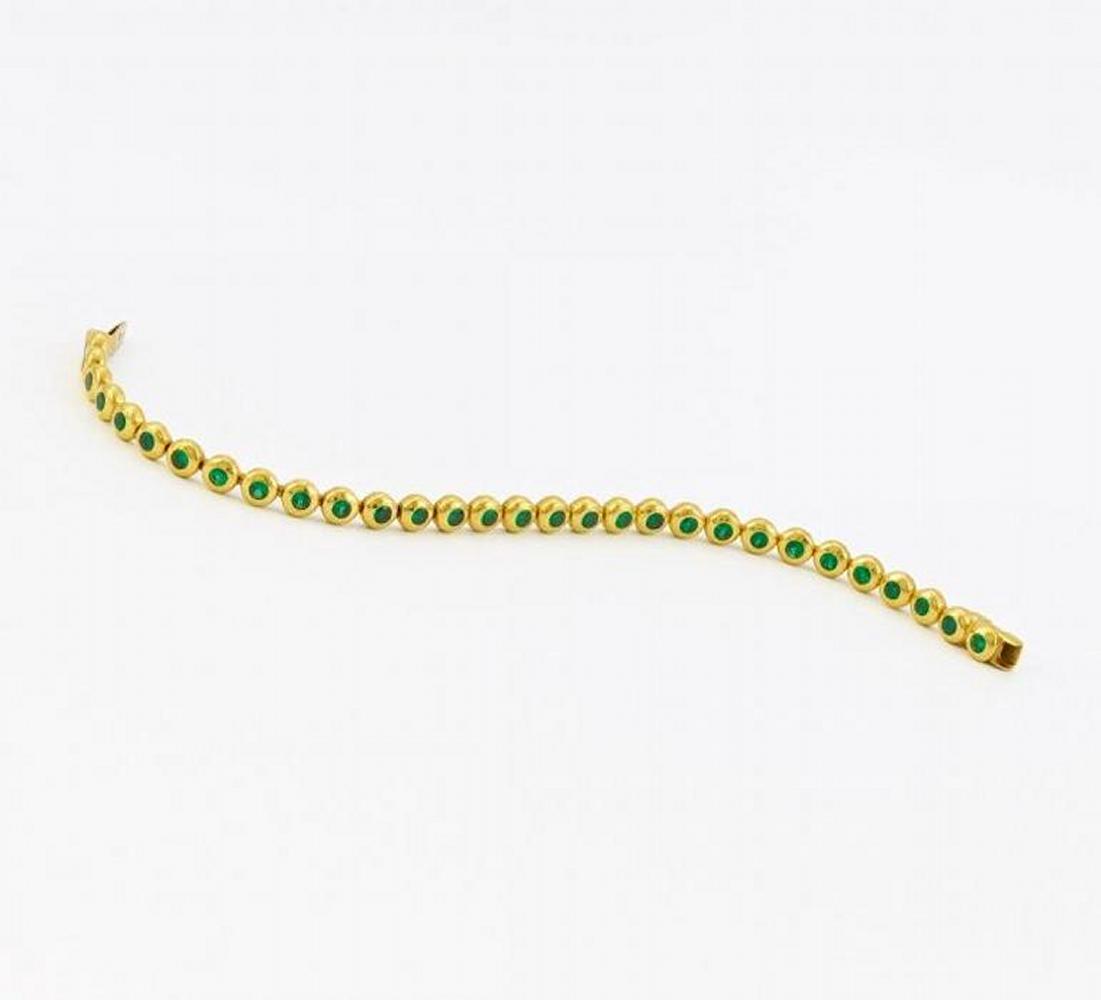 750/- Gelbgold, Gewicht: 31,5g. L x B=ca. 18,5 x 0,5cm. 30 rund facettierte Smaragde zus.ca. 3,0ct, feine Farbe.