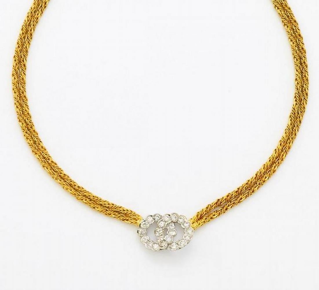 750/- Gelb-/Weißgold, Gewicht: 20,3g. L.ca. 40,2cm. 20 Brillanten zus.ca. 0,60ct W-TCr(H-I) VS.