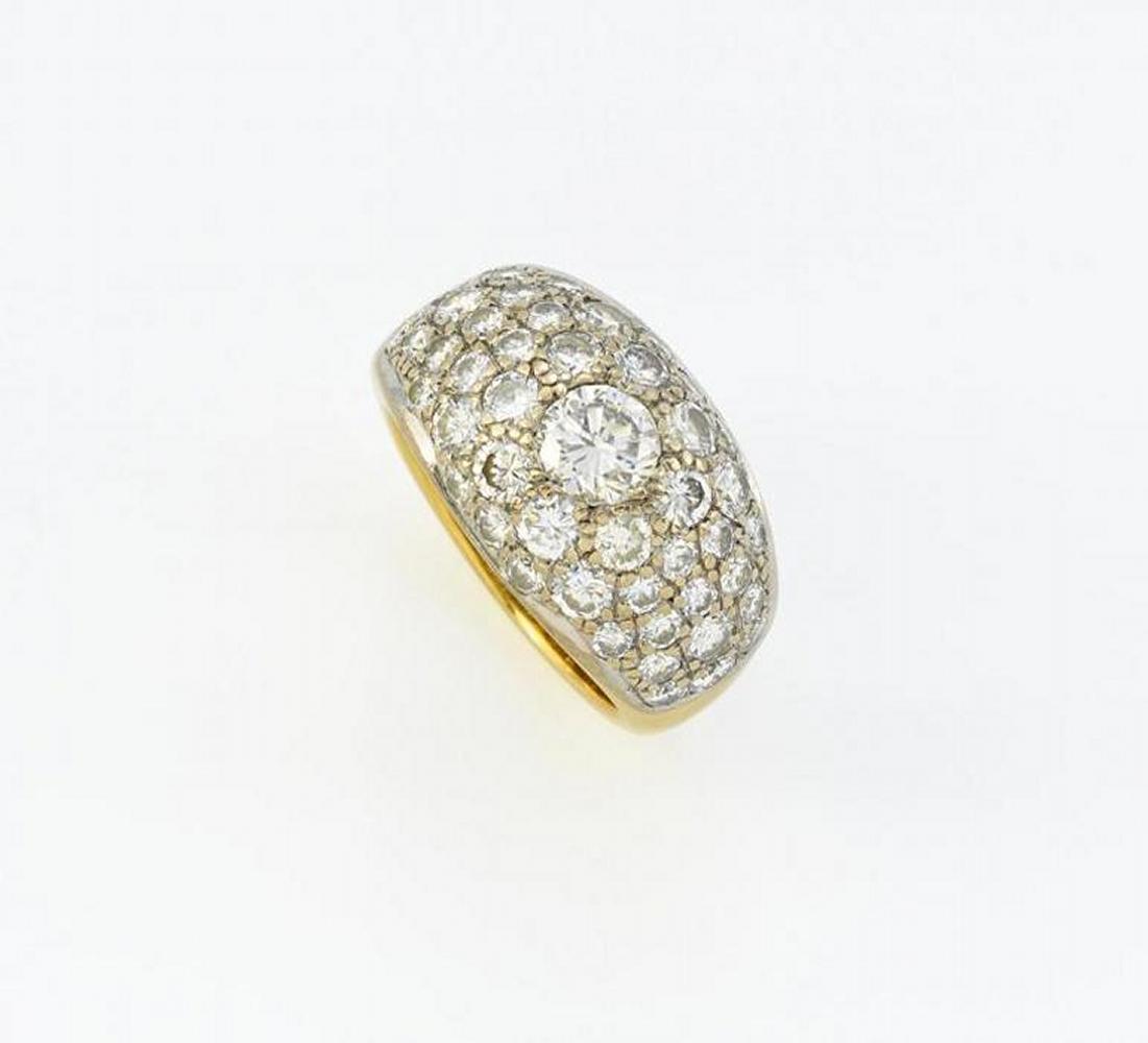 750/- Gelb-/Weißgold, Gewicht: 12,2g. EU-RM: 48,5. 41 Brillanten zus.ca. 0,698ct W(H) VVS, 1 Brillant ca. 0,445ct W(H) VVS.