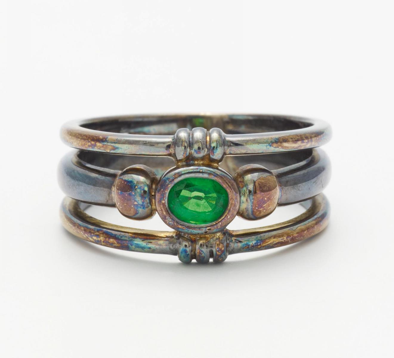 Silber, Gewicht: 9,5g. EU-RM: 64. 1 oval facettierter Tsavorit.