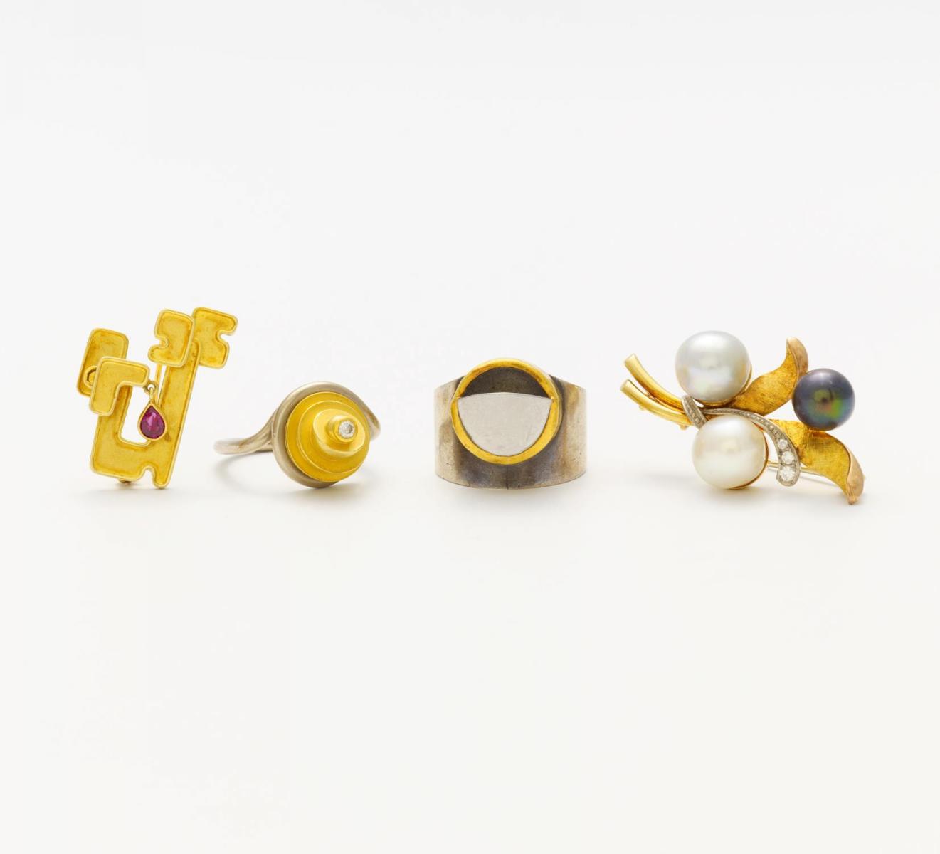 KONVOLUT: ZWEI RINGE UND ZWEI BROSCHEN.