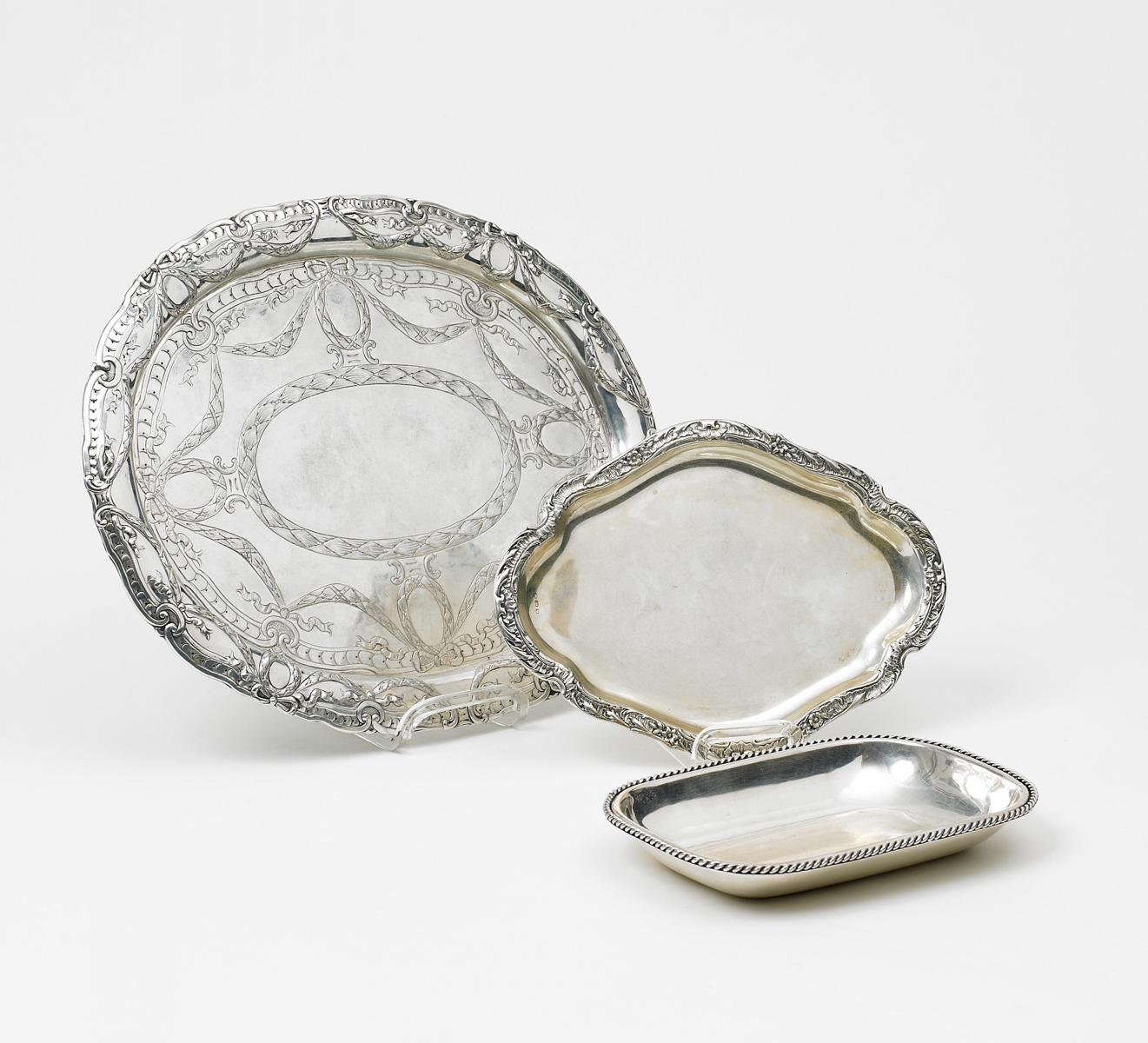 Silber. Ca. 910g. 34,5x28/ 23,5x17/ 19,5x13cm.