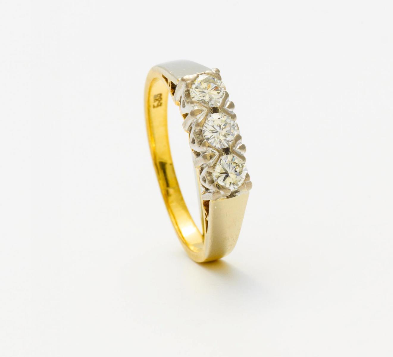 585/- Gelb-/Weißgold, gestempelt, Gewicht: 4,0g. EU-RM: 54. 3 Brillanten.