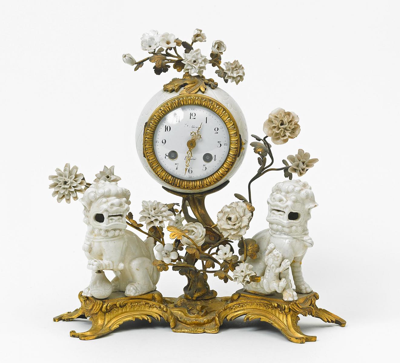 TISCHUHR MIT ASIATISCHEN LÖWEN.