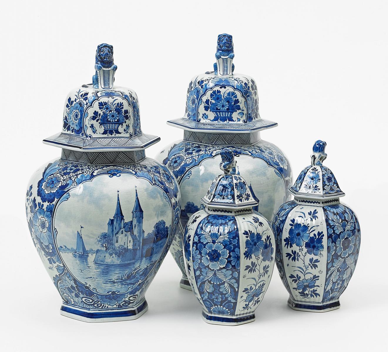 Heller Scherben. Weiße Glasur, blaues Dekor. H.26,5cm/42 cm.
