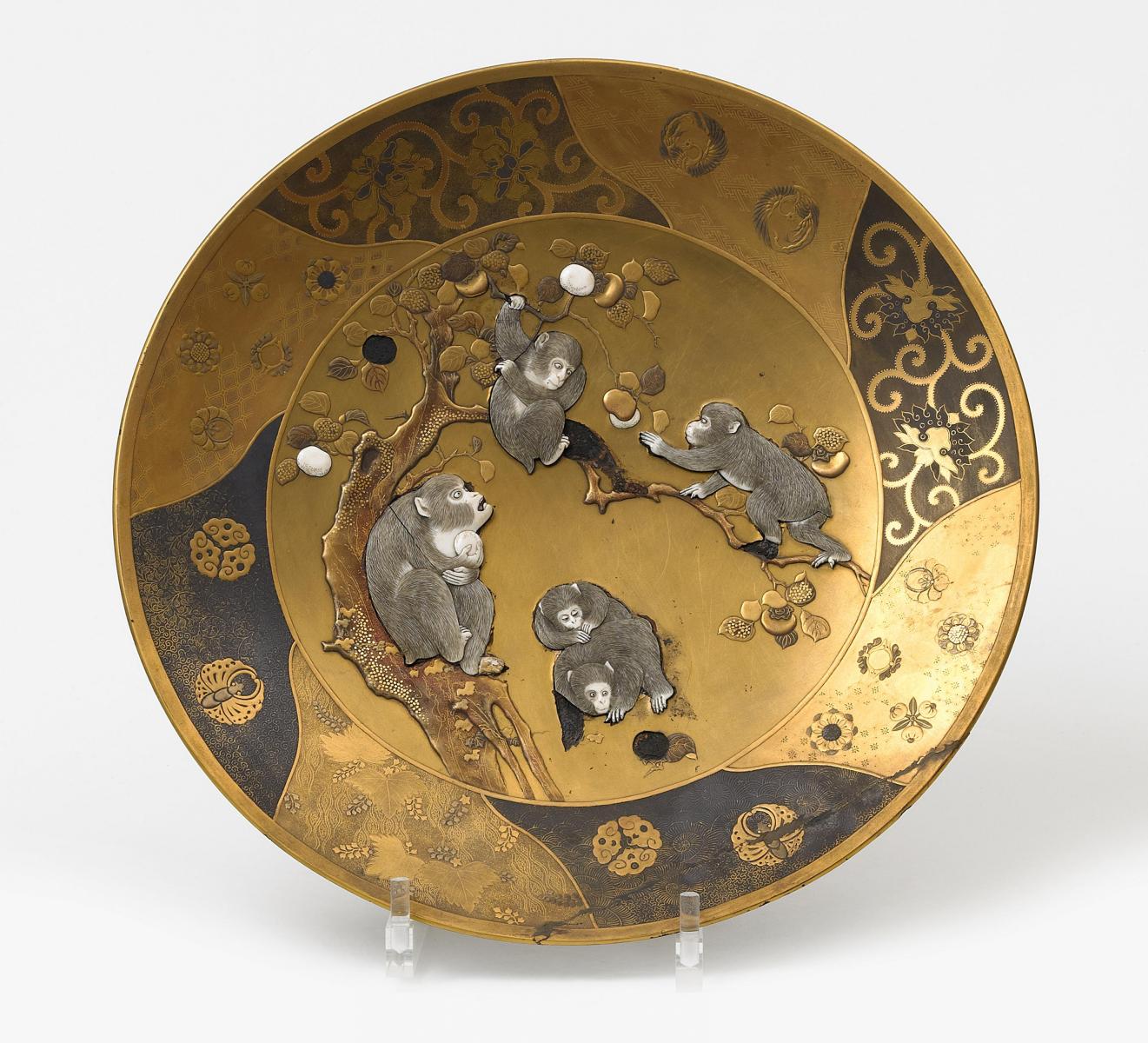 Holz mit Goldlack und Bein. Ø 41 cm. Zustand C.