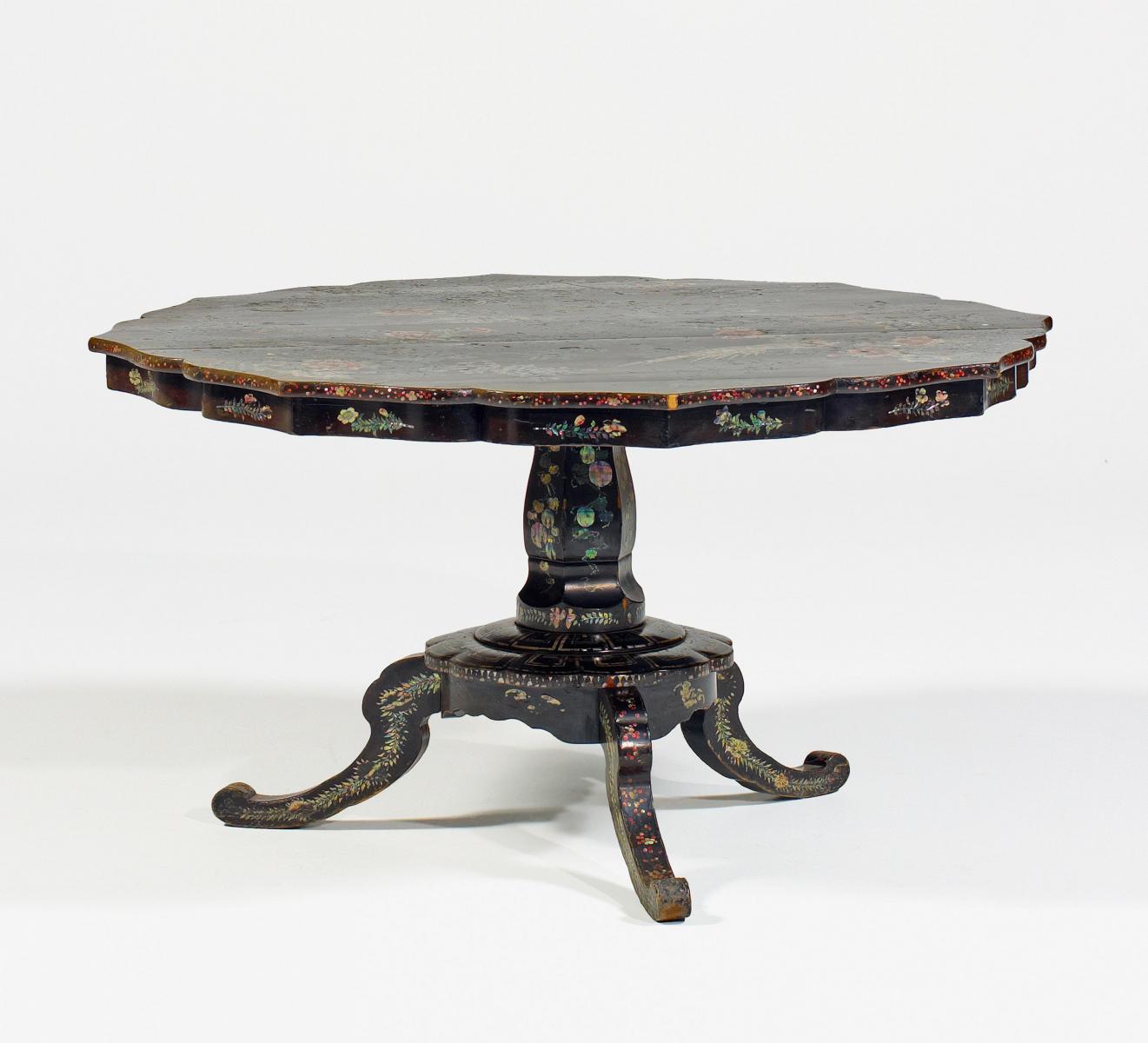 SALONTISCH MIT ASIATISCHEN PERLMUTTEINLAGEN. KOLONIAL-STIL.