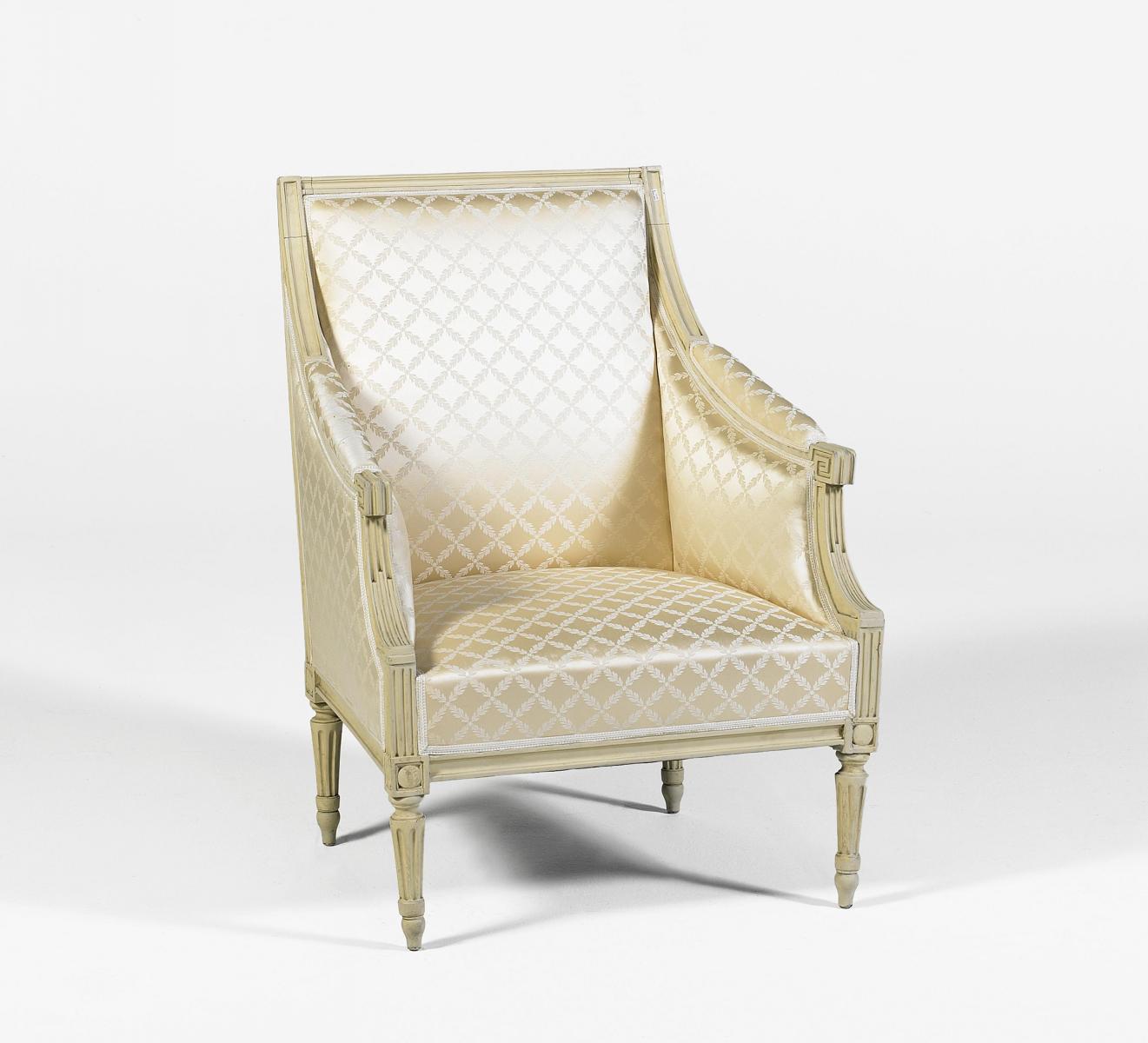 Holz geschnitzt, beige gefasst. Gepolstert. H.92 cm. Zustand C.