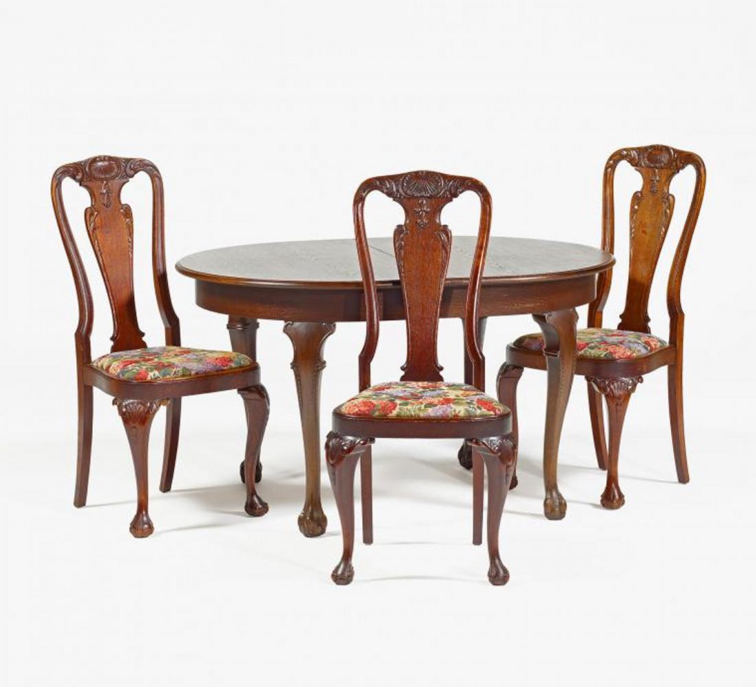 ESSTISCH MIT 4 STÜHLEN UND ZWEI ARMLEHNSESSELN.