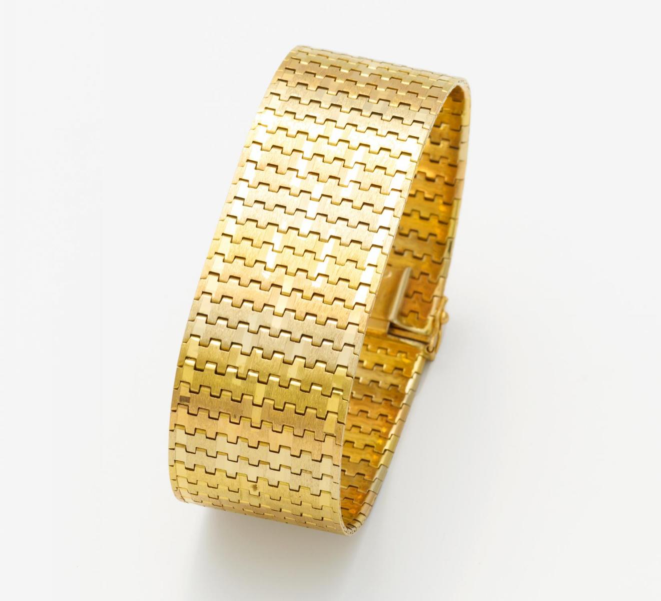 750/- Gelb-/Rot-/Weißgold, gestempelt, Gewicht: 71,5g. L x B=ca. 20,0 x 2,6cm.