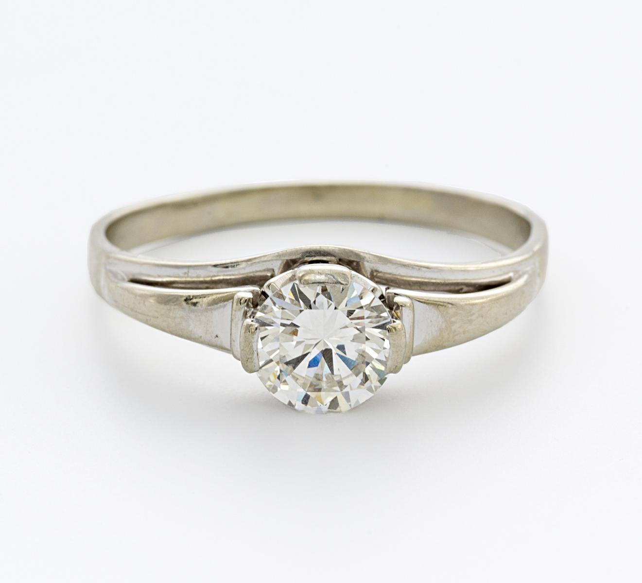 590/- Weißgold, Gewicht: 3,4g. EU-RM: 63,5. 1 Brillant ca. 1,024ct W(H) VVS2.
