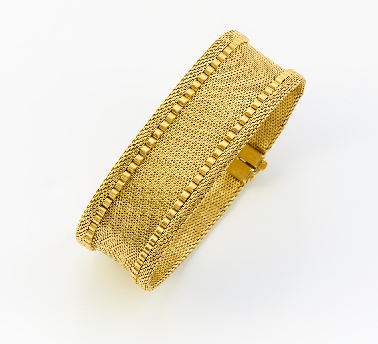 750/- Gelbgold, Gewicht: 69,7g. L x B=ca. 19,2 x 2,5cm.