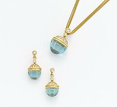 AQUAMARIN-DIAMANT-OHRRINGE UND KETTE.