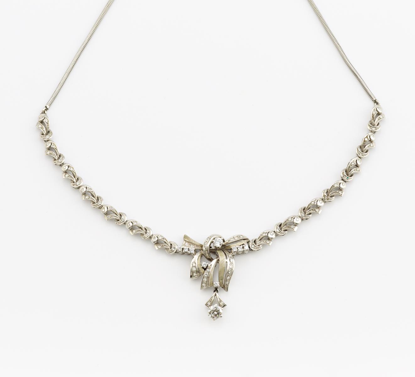 750/- Weißgold, Gewicht: 23,0g. L.ca. 40,0cm. 76 8/8-Diamanten und 10 Brillanten zus.ca. 0,989ct W(H) VVS-VS.