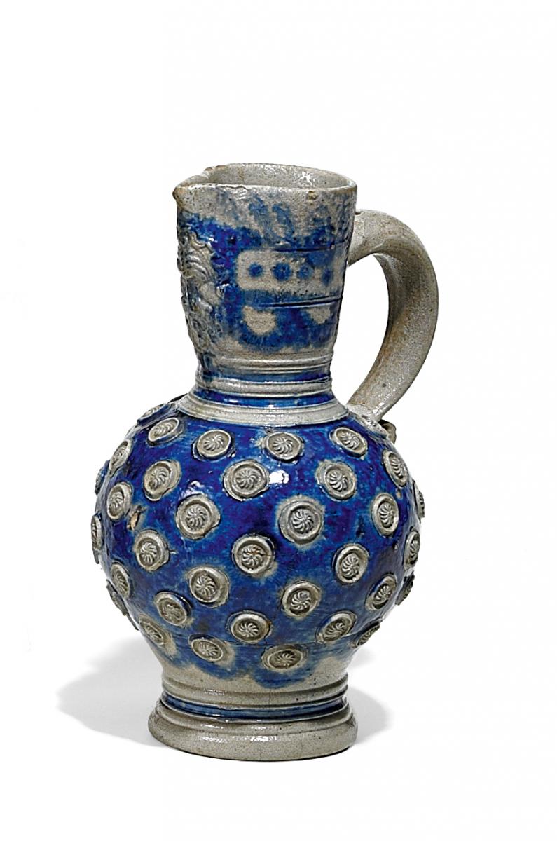 Graues, salzglasiertes Steinzeug. Höhe 19 cm. Zustand B/C.