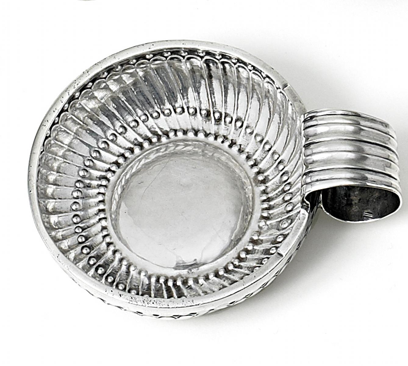 Silber. Vorne, unterhalb des Randes Besitzergravur 'J. Bleton 1840'. Ca. 48g. Länge 9cm.