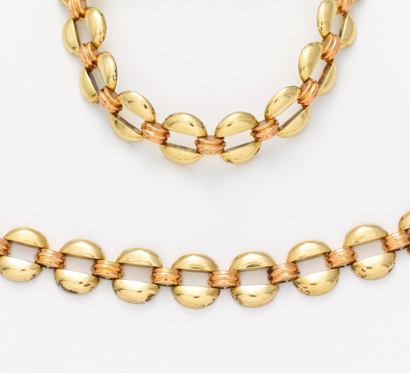 585/- Gelb-/Roségold, gest., Gewicht: 1. 64,5g, 2. 21,0g. Collier: L.ca. 44,0cm, Armband: L.ca. 17,5cm.