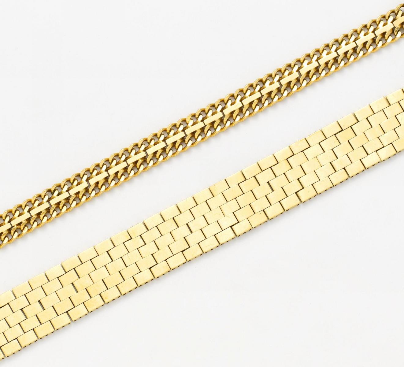 585/- Gelbgold, gest., Gewicht: 1. 43,1g, 2. 25,6g. L.ca. 21,5cm, ca. 20,0cm.