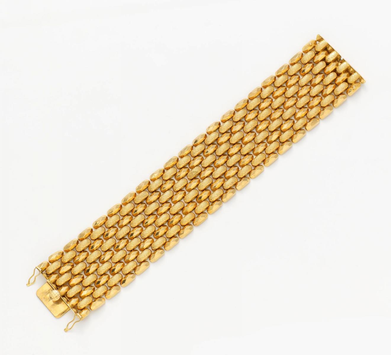 750/- Gelbgold, gestempelt, Gewicht: 69,0g. L x B=ca. 20,0 x 3,8cm.