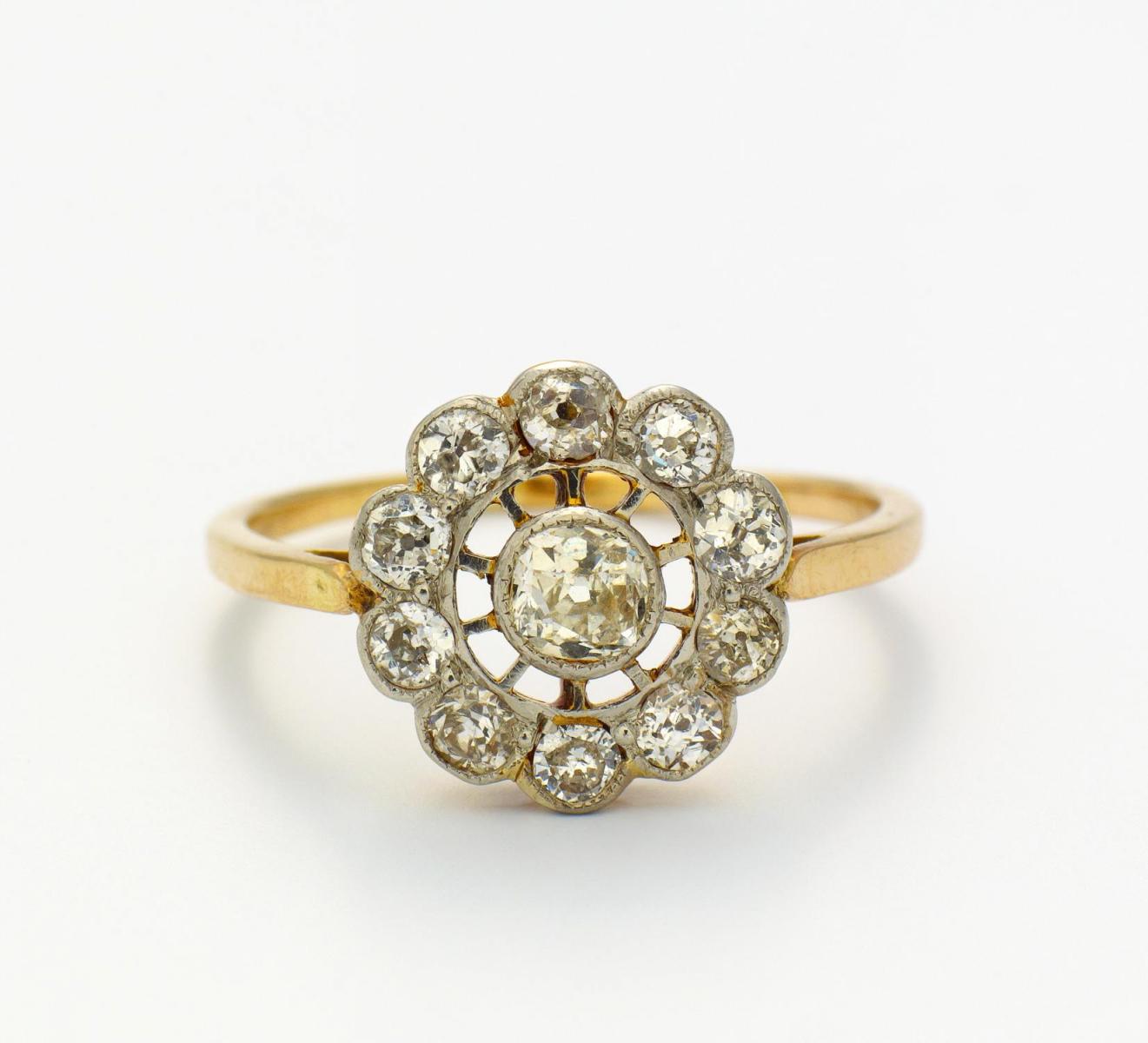 Gold- und silberfarben, Gewicht: 2,5g. EU-RM: 56. 11 Diamanten im Altschliff.