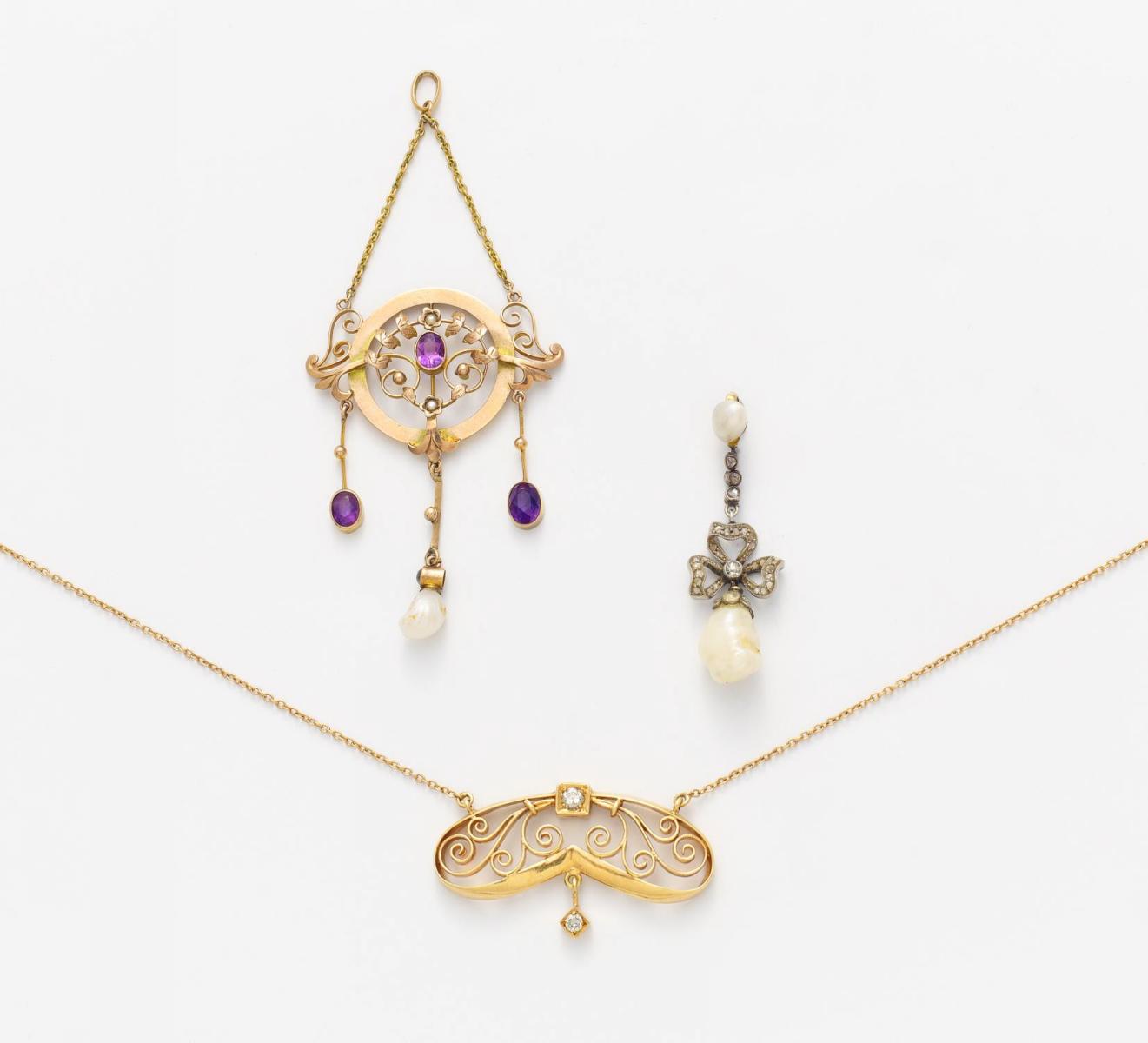 KONVOLUT: DREI JUGENDSTIL-ANHÄNGER.