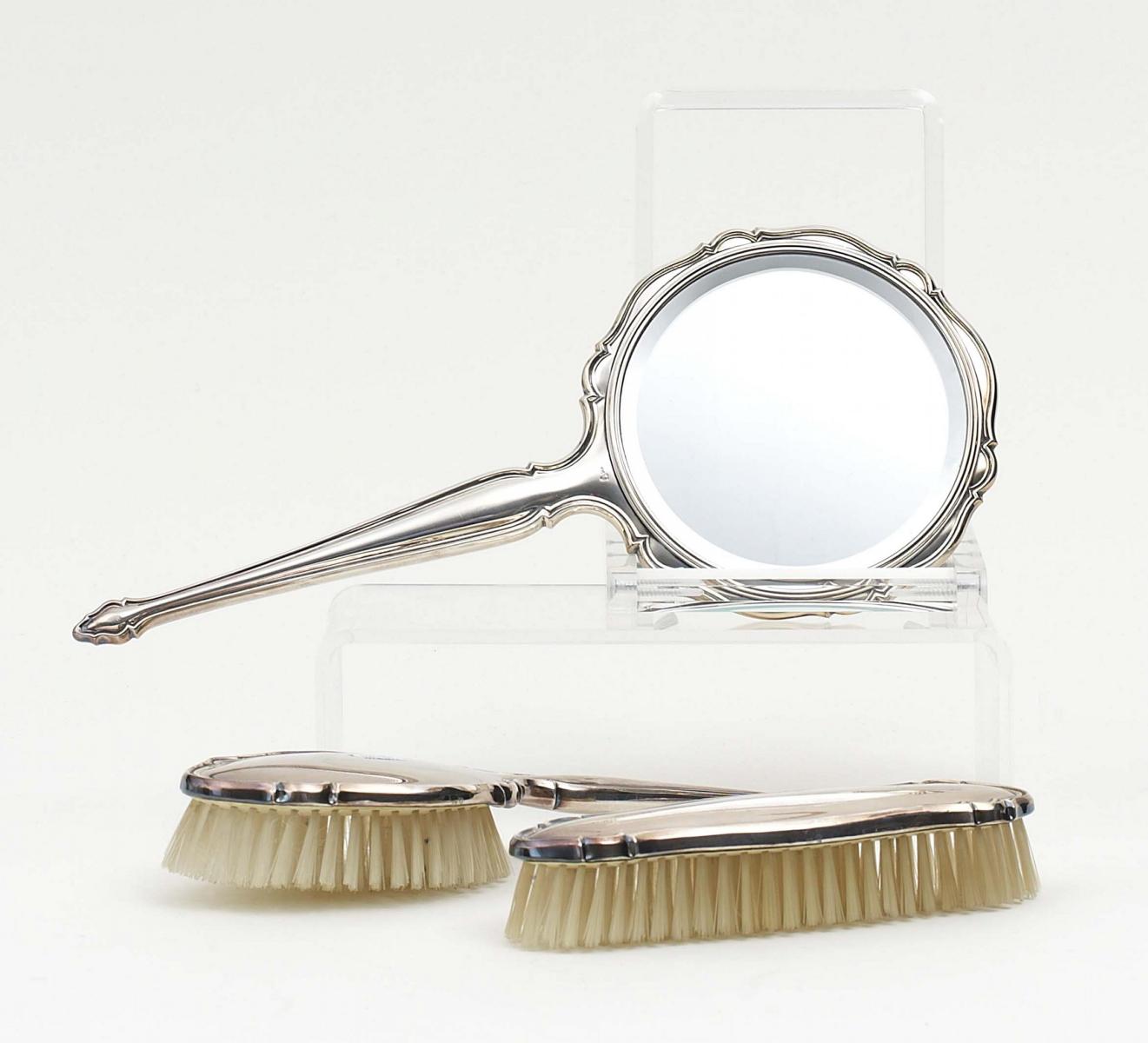 HANDSPIEGEL UND 2 BÜRSTEN.