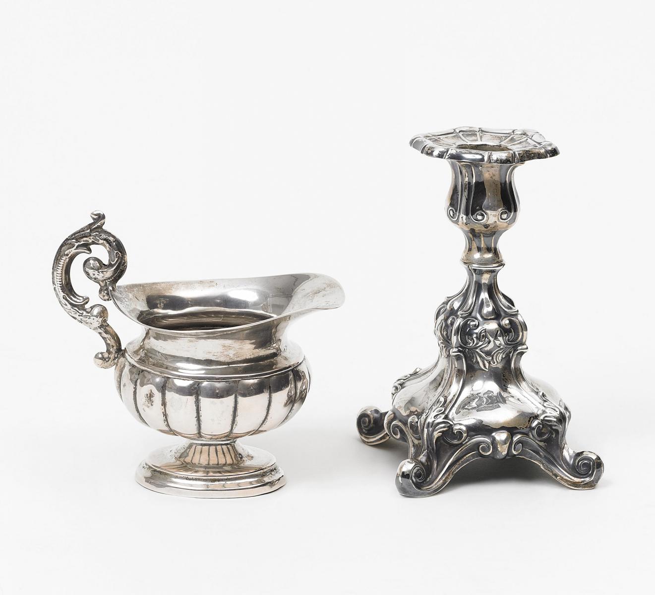 Marken verschlagen. Zustand B. Beilage: Kleiner Leuchter. Versilbert.
