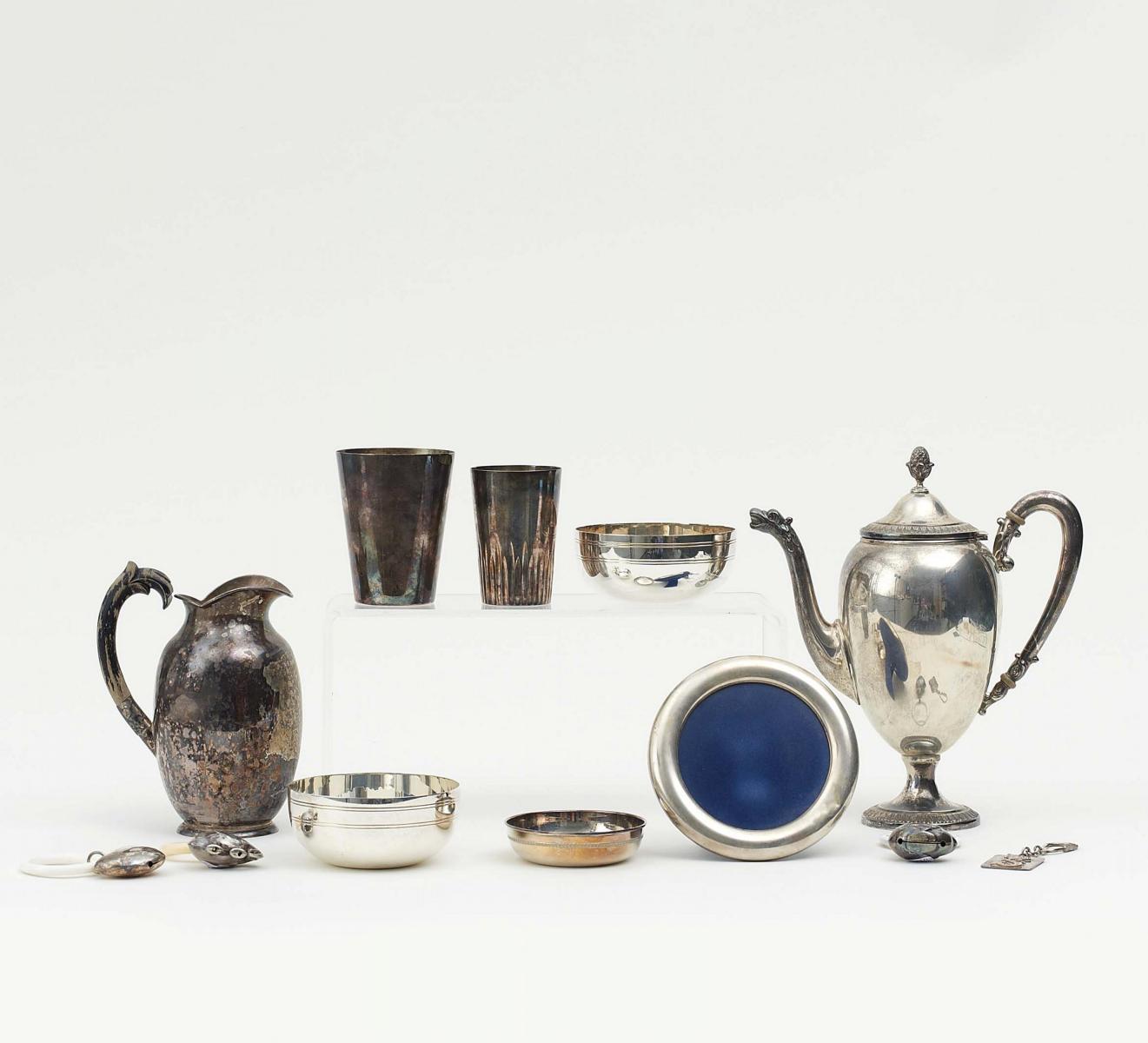 Verschieden gemarkt, einmal ohne Marke. Zustand A-B. Beilage: Kleiner Rahmen, Schälchen, Schlüsselanhänger, 3 Rasseln.