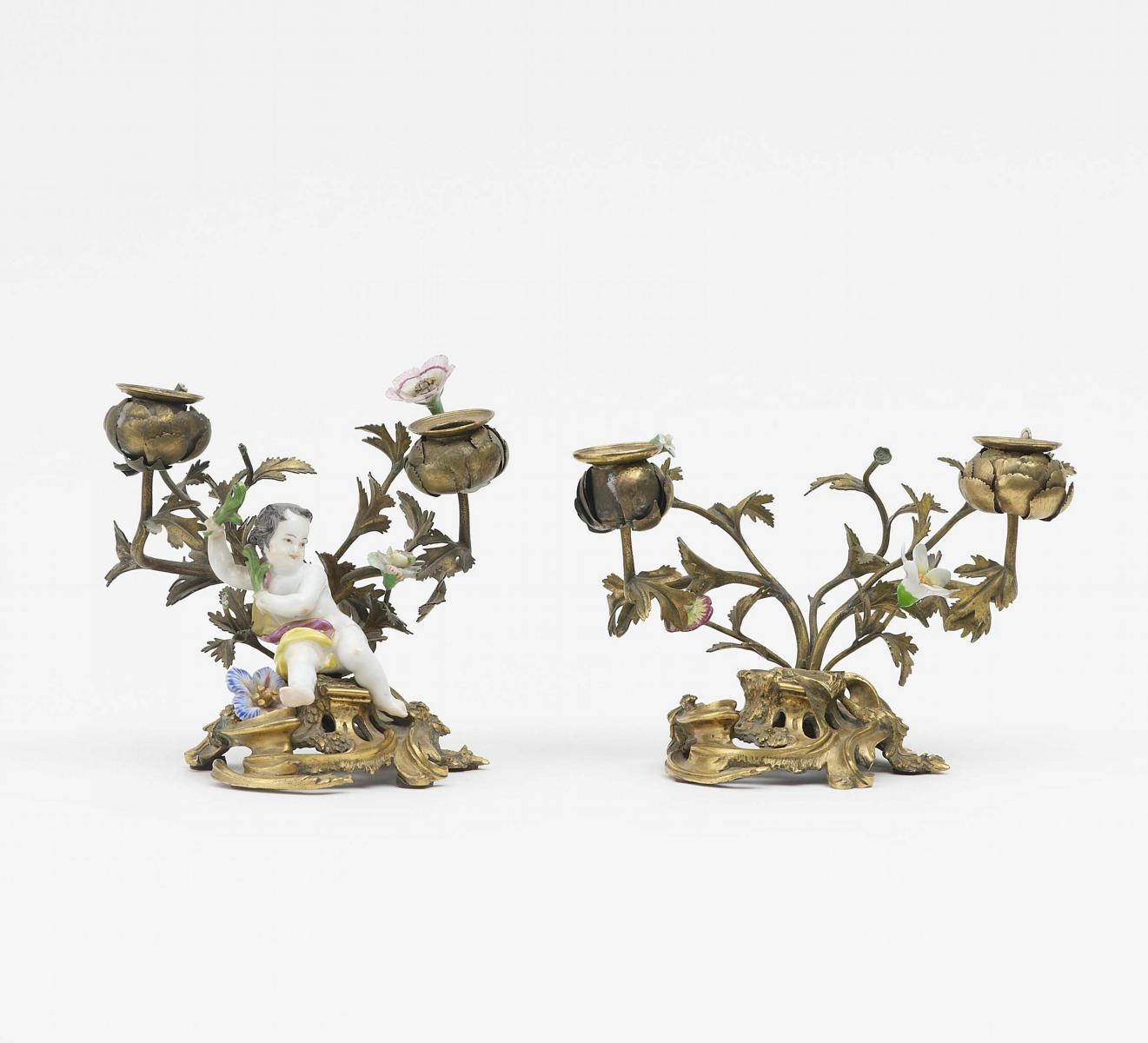 Bronze, Metall, Porzellan. H.14,5cm/17,5 cm.