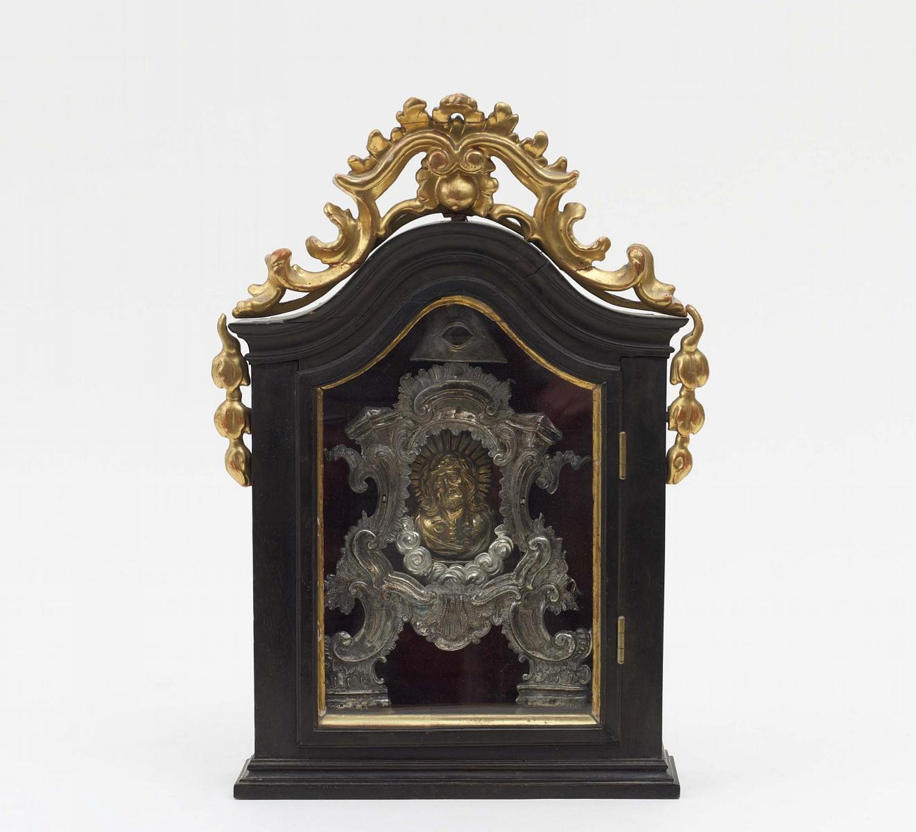 Silberblech, Metall, Holzrahmen. Mit Rahmen 42 x 30 cm.