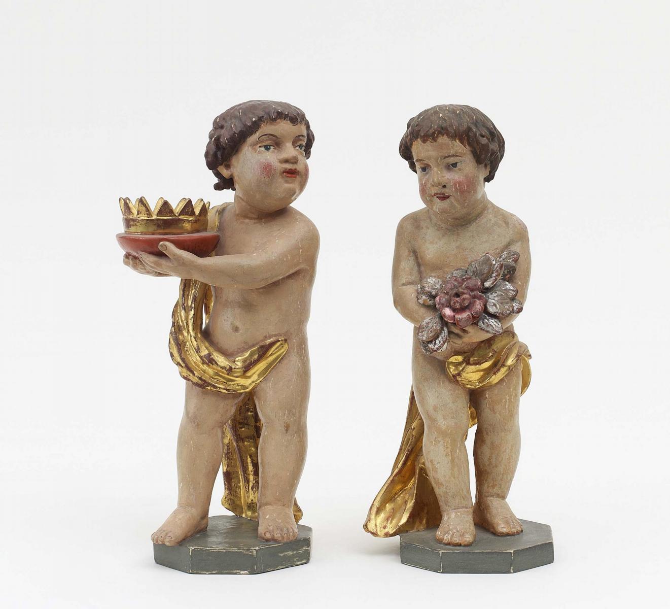 Holz, geschnitzt, farbig und gold gefasst. H. je 33 cm. Zustand C.