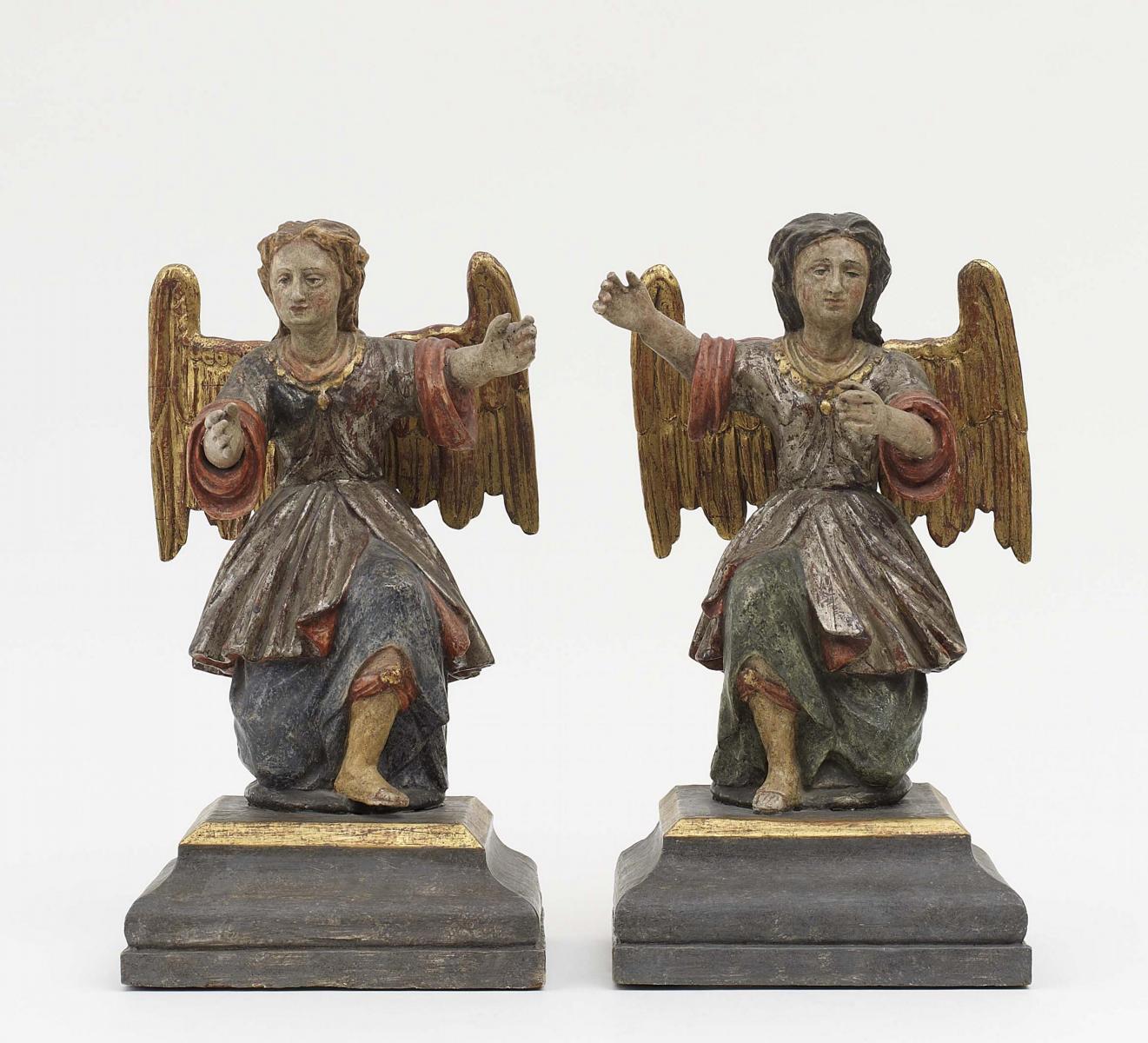 Holz, geschnitzt, farbig gefasst und vergoldet. H.42 cm. Zustand B/C und C.