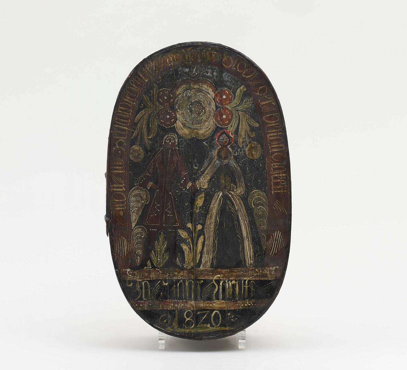 Holz, farbig gefasst. 18x47x30 cm. Zustand C.