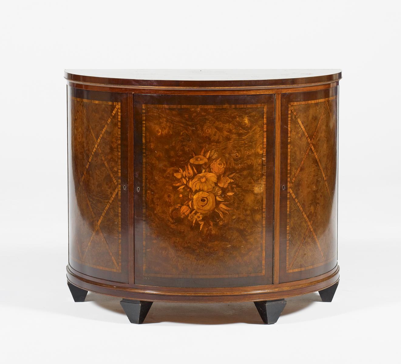 Mahagoni u.a. Hölzer. 93x112x59,5 cm. Zustand B/C.