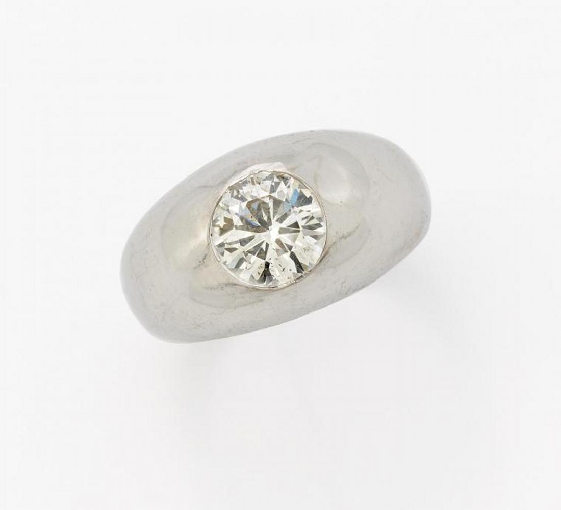 750/- Weißgold, Gewicht: 15,5g. EU-RM: 53. 1 Diamant im Übergangsschliff ca. 1,492ct TCr(I) P1.